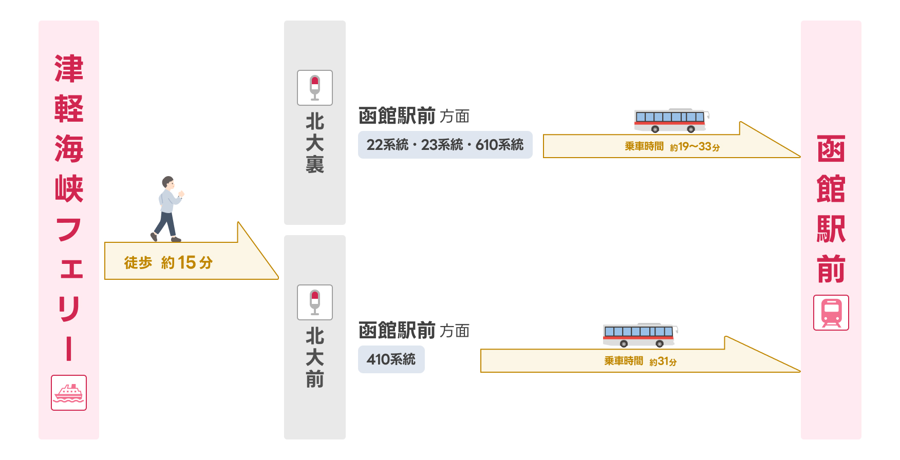 津軽海峡フェリーターミナルから主要エリアへのアクセス