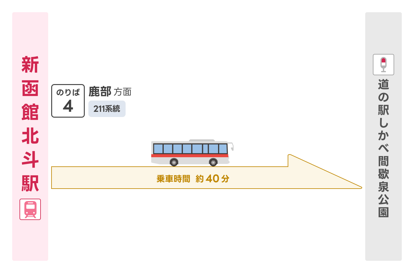新函館北斗駅道の駅しかべ間歇泉公園4番のりば211系統40分